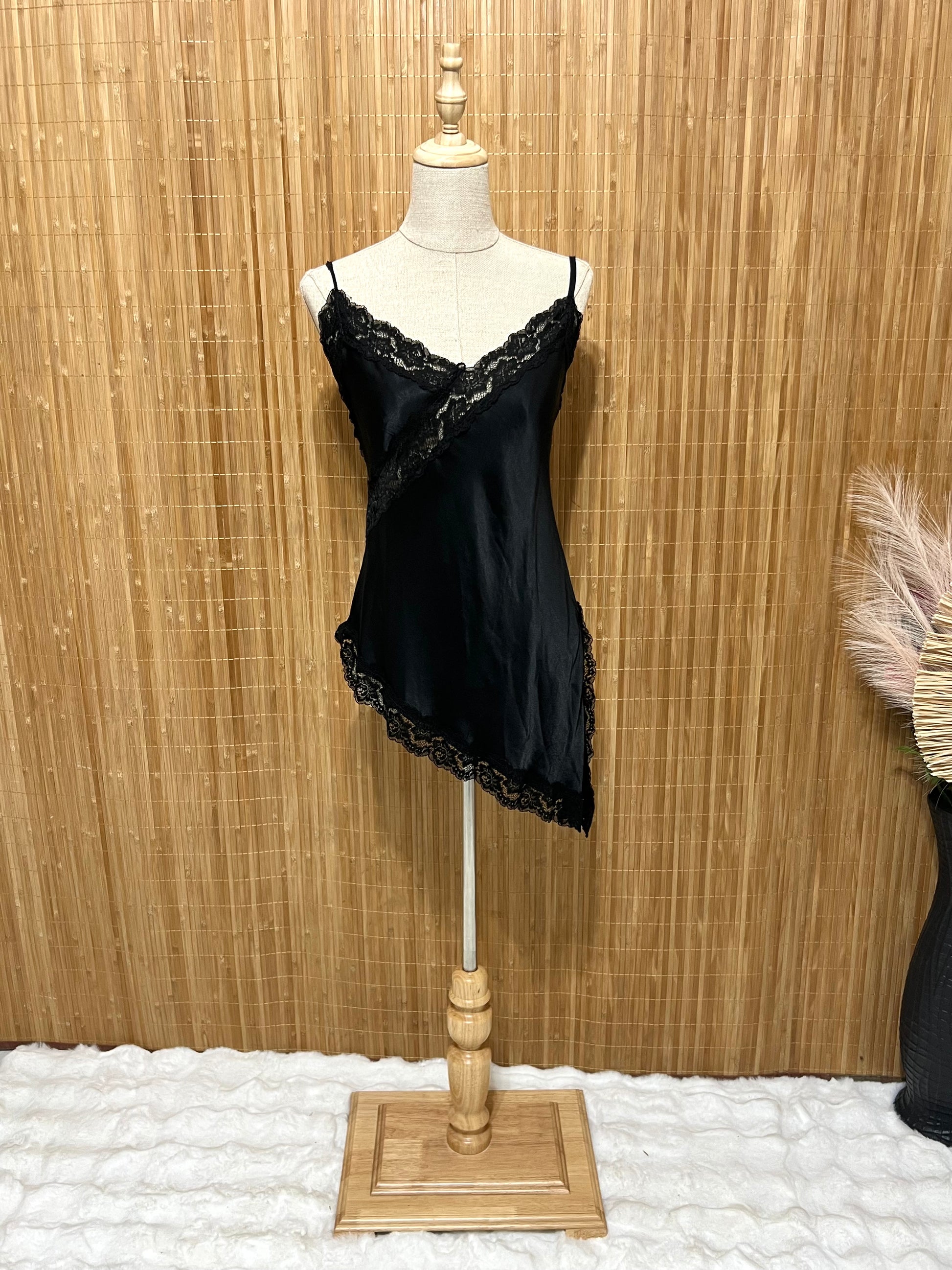 Top largo lencero satinado con encaje y tirantes finos ajustables – Disponible en 6 colores