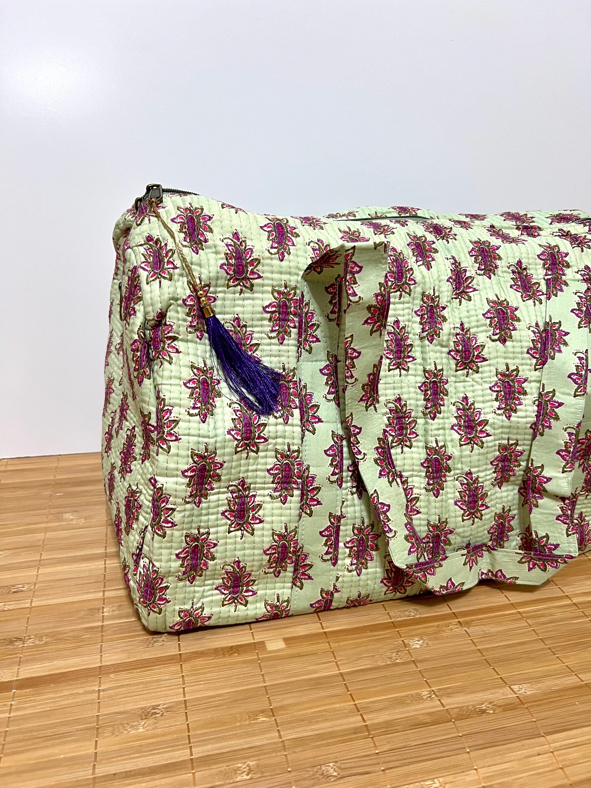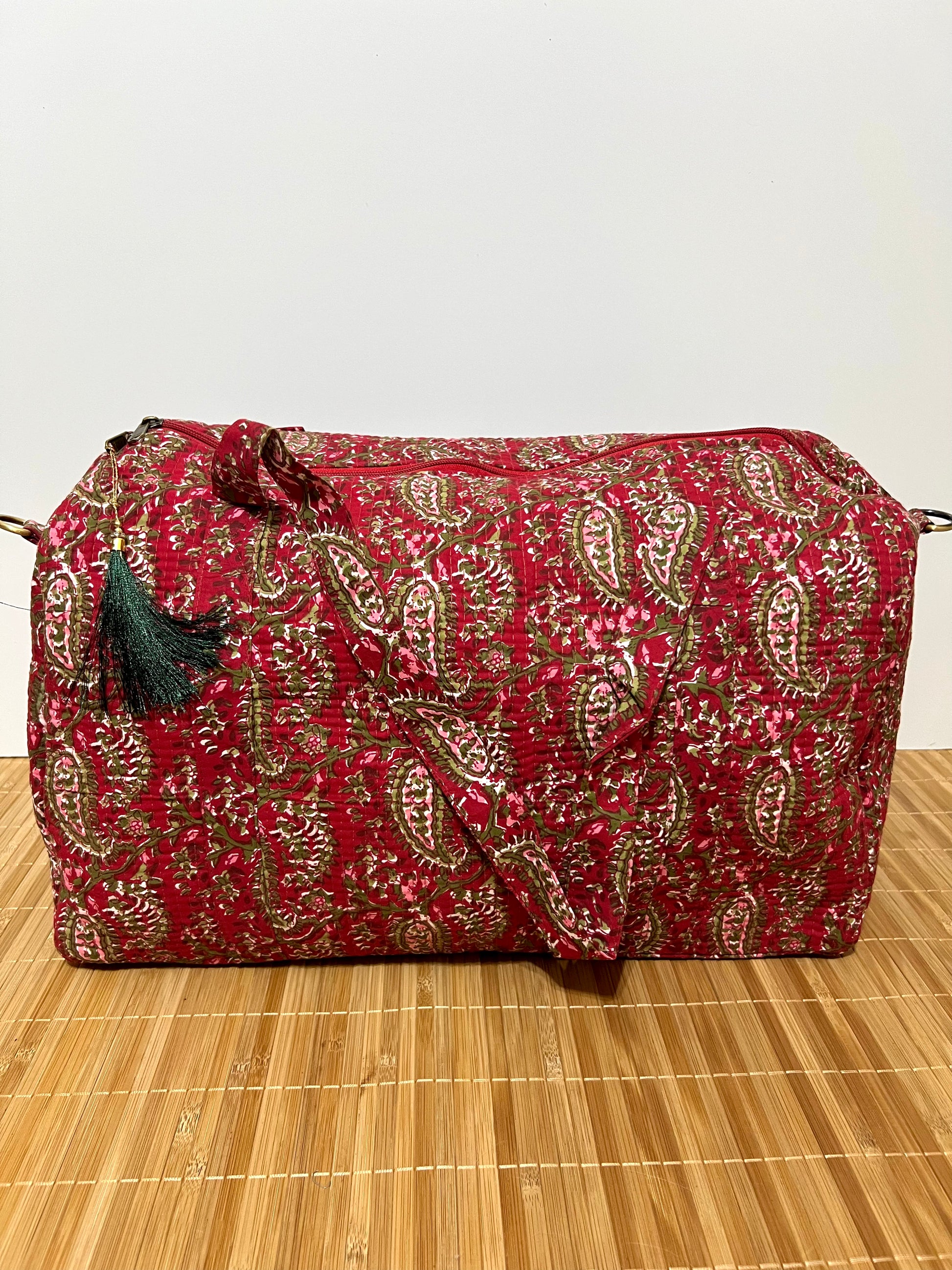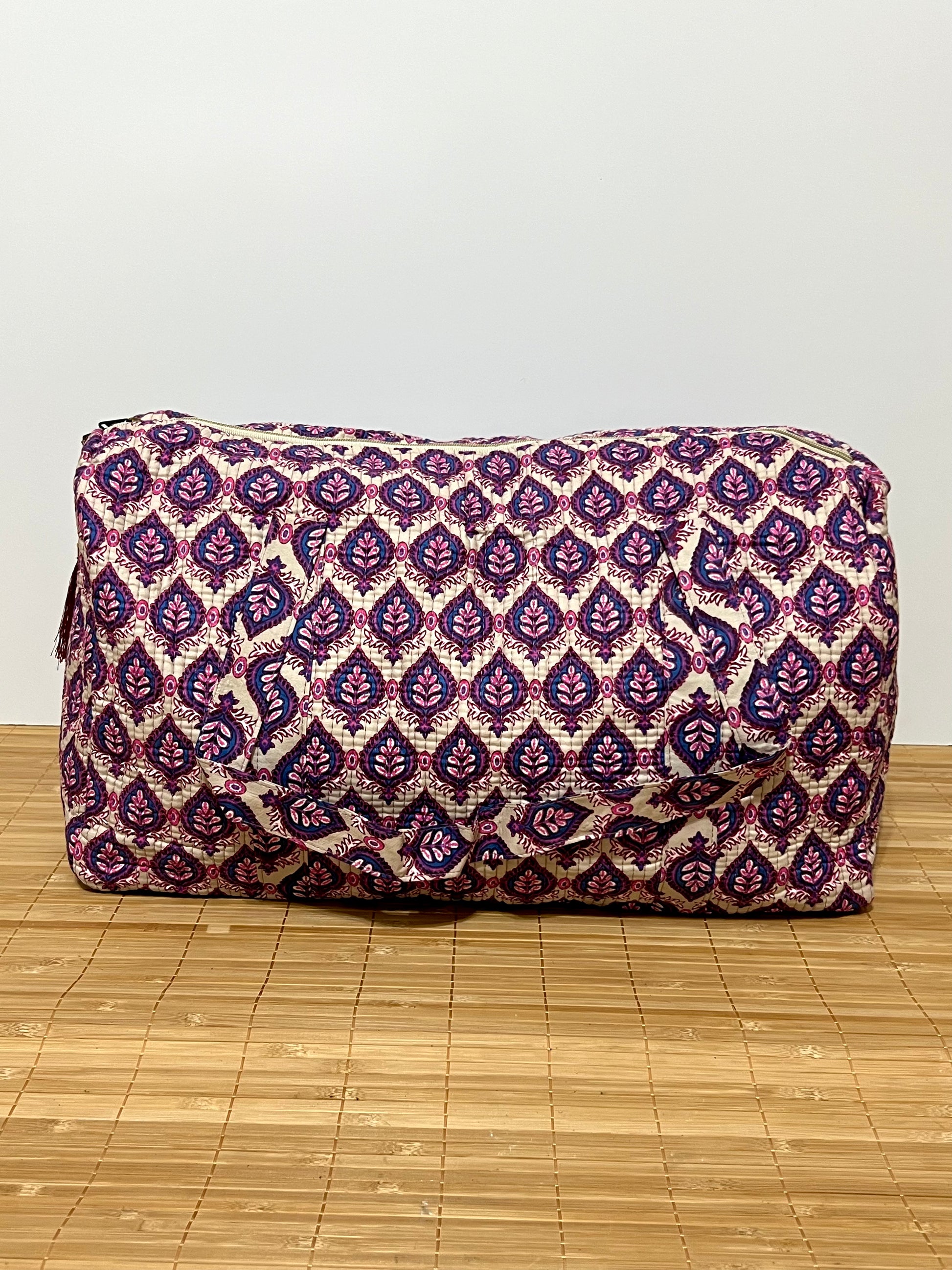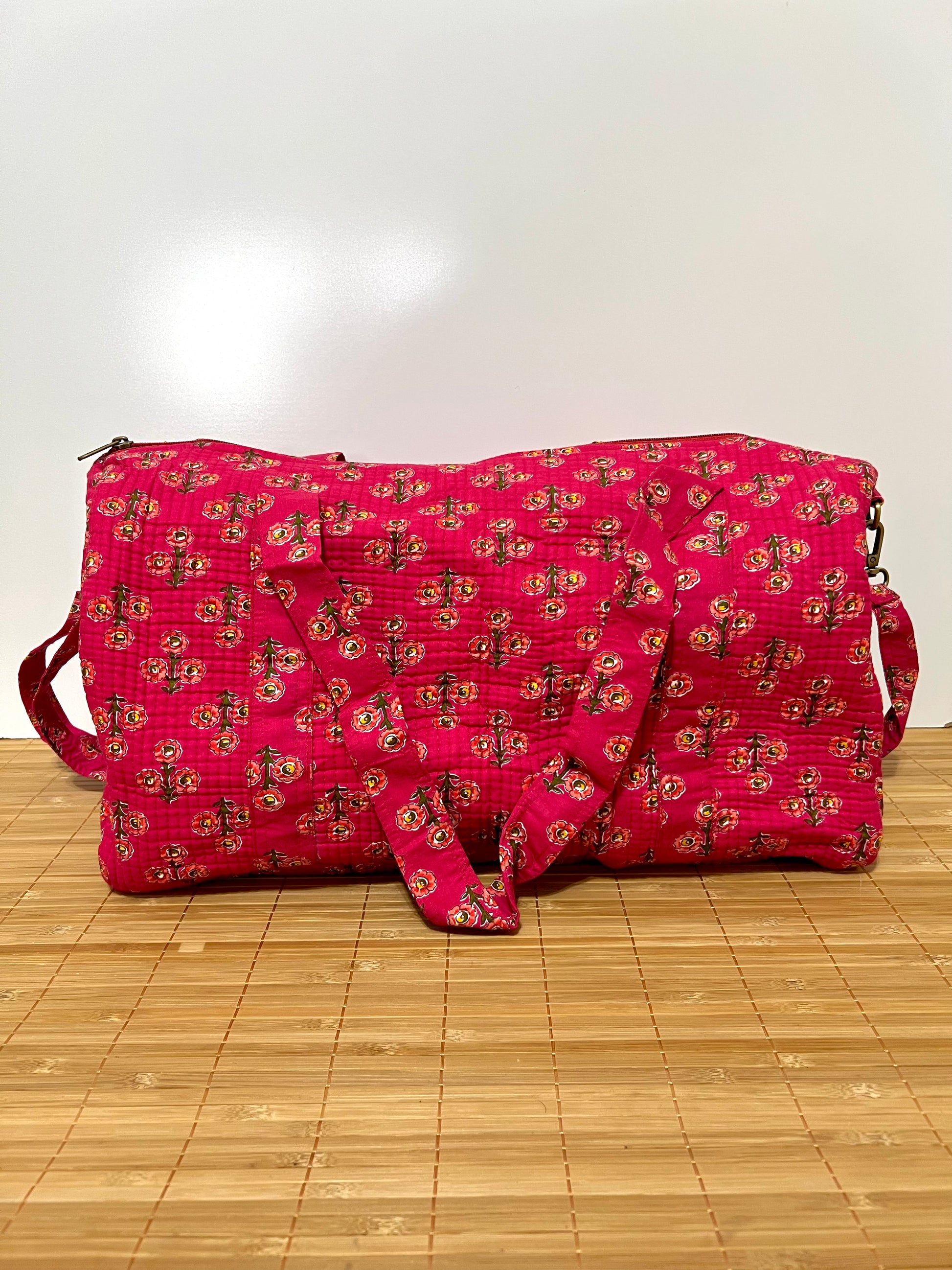 Bolso de viaje artesanal, hecho a mano en la India con 100% algodón natural. Disponible en varios modelos con estampados únicos y coloridos (ver fotos). Ideal como bolsa de fin de semana, bolso deportivo o bolso diario.
