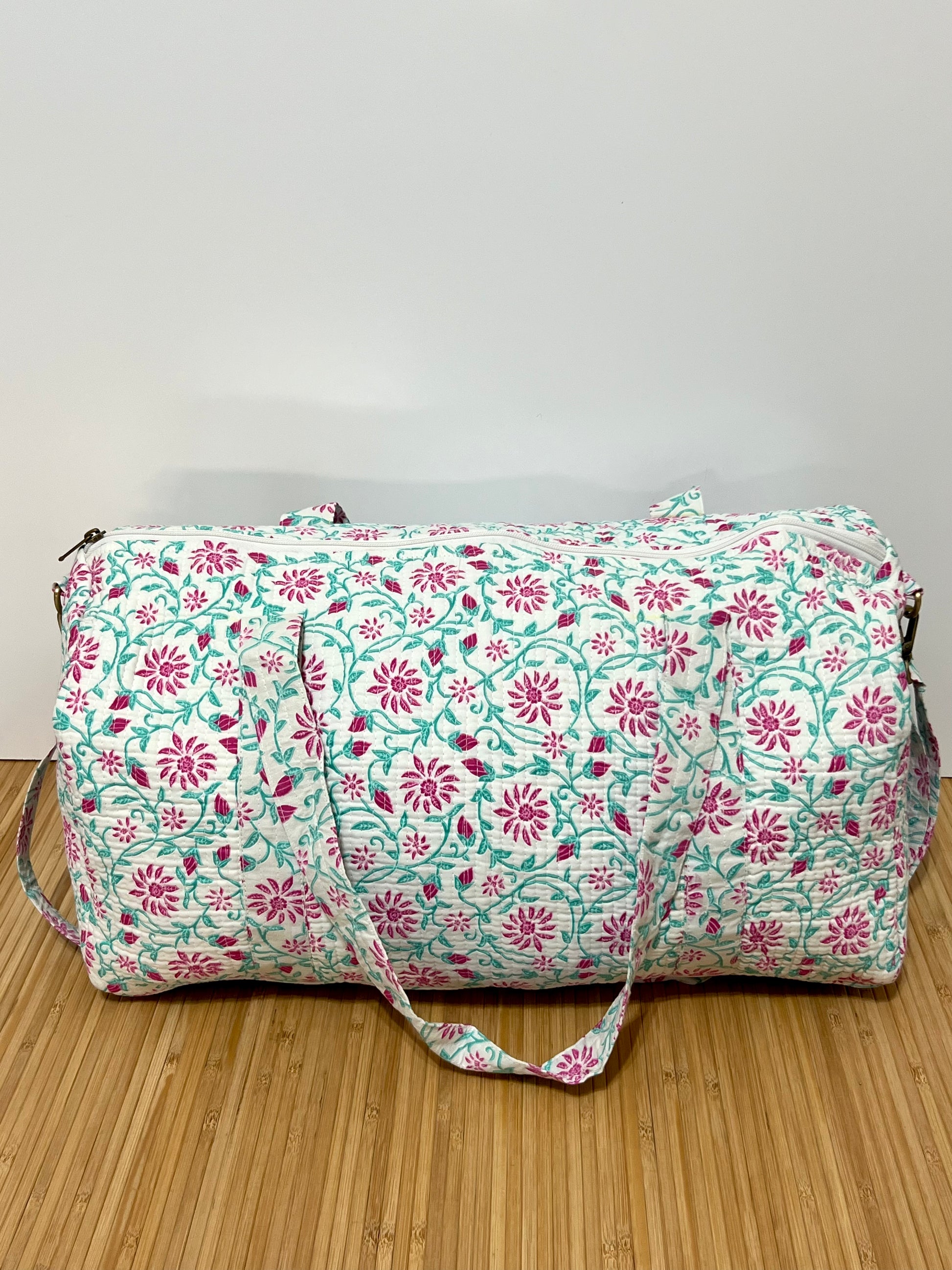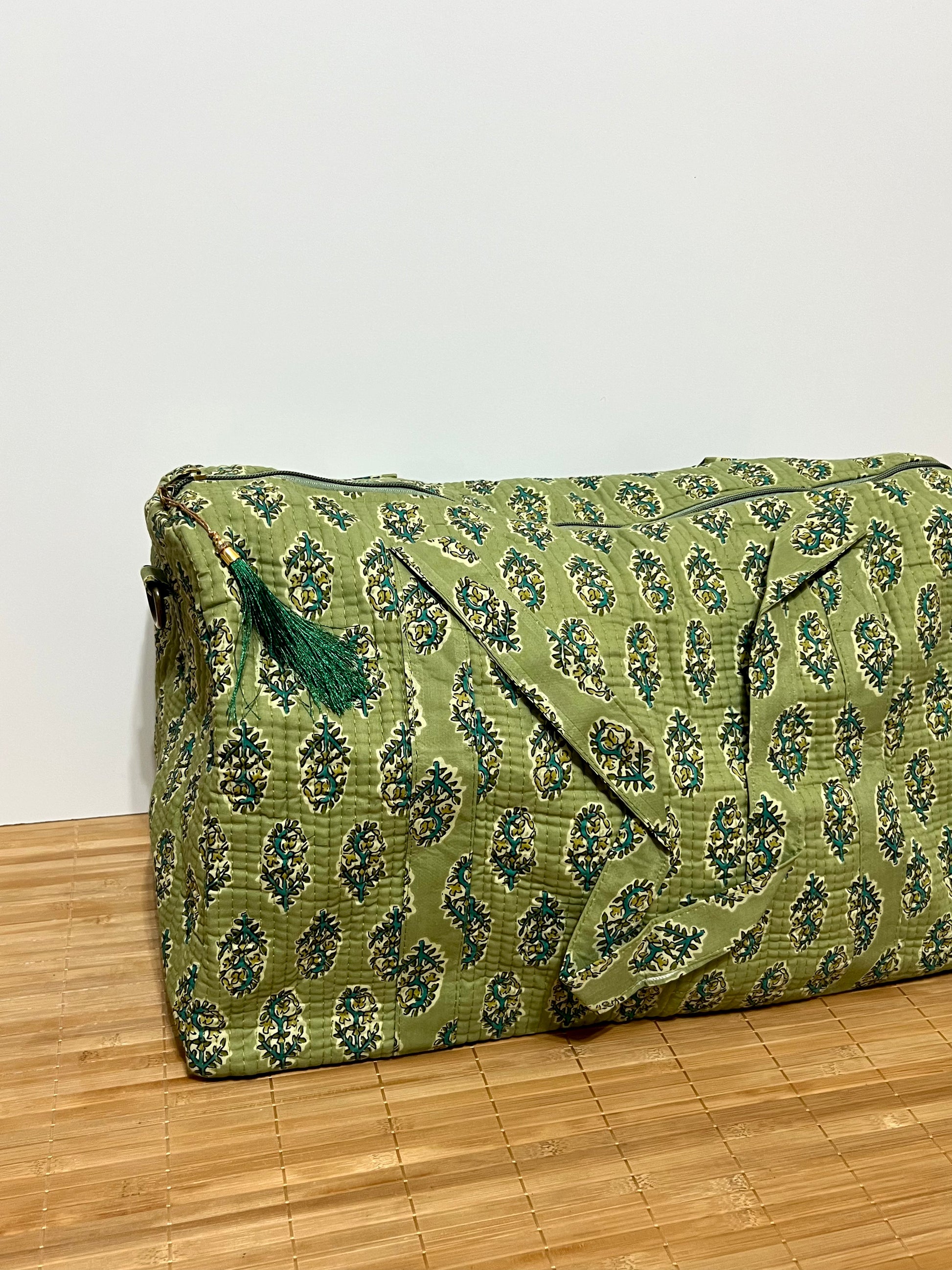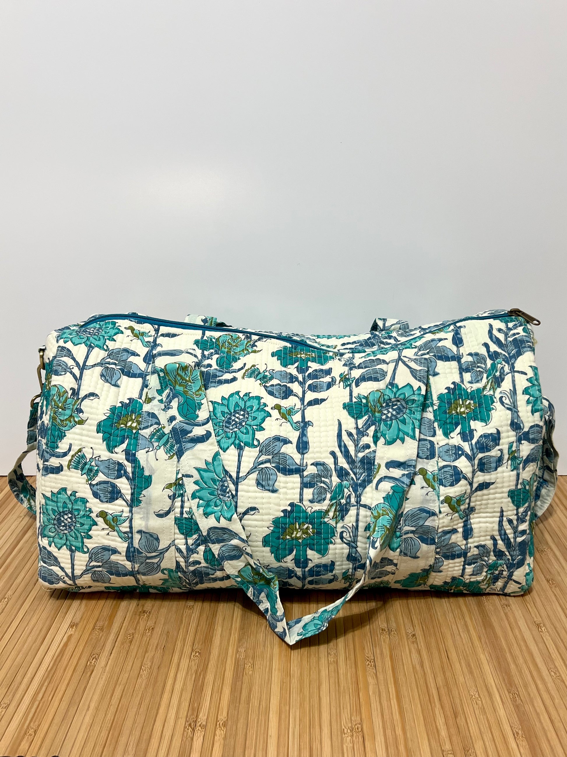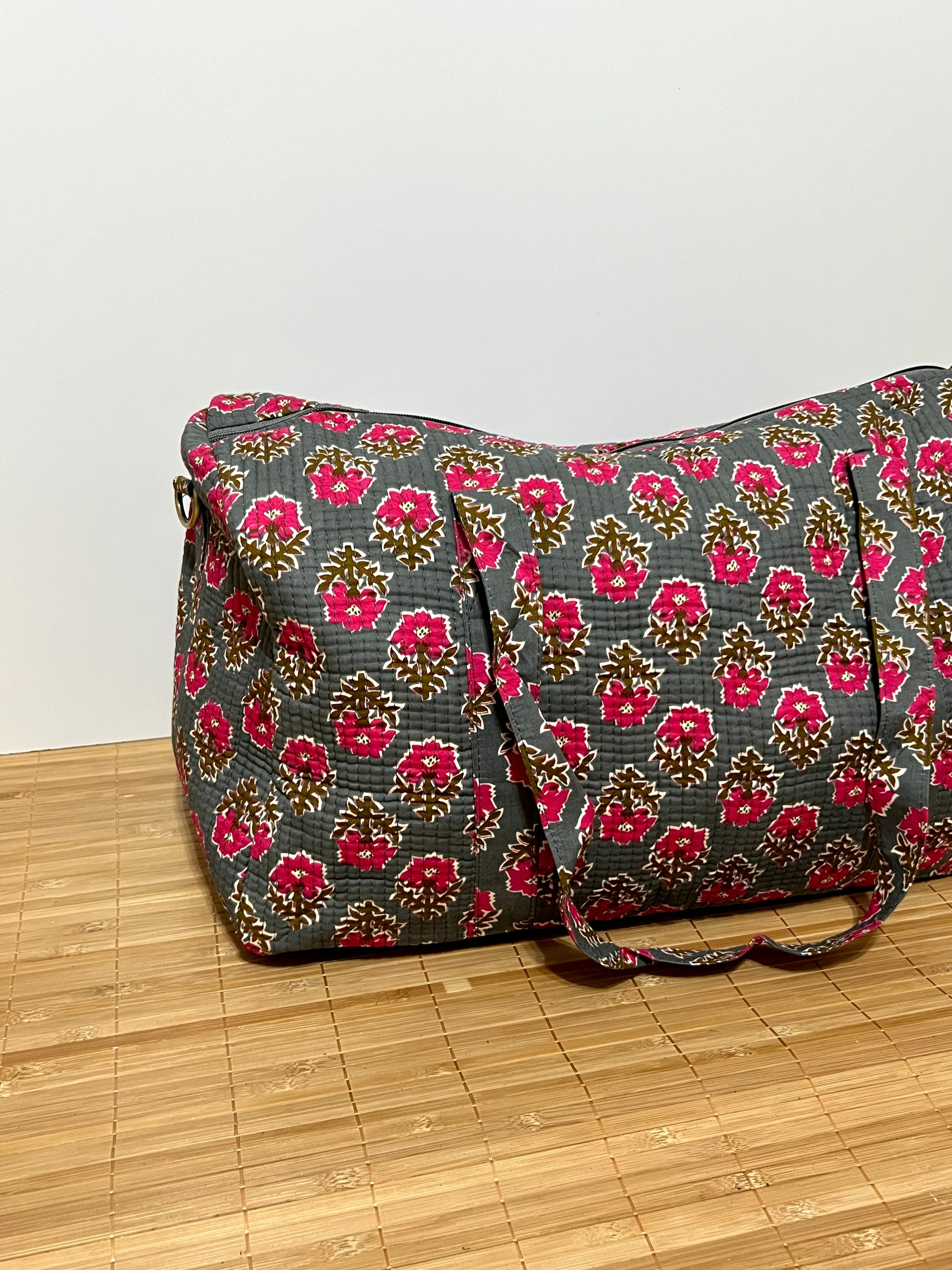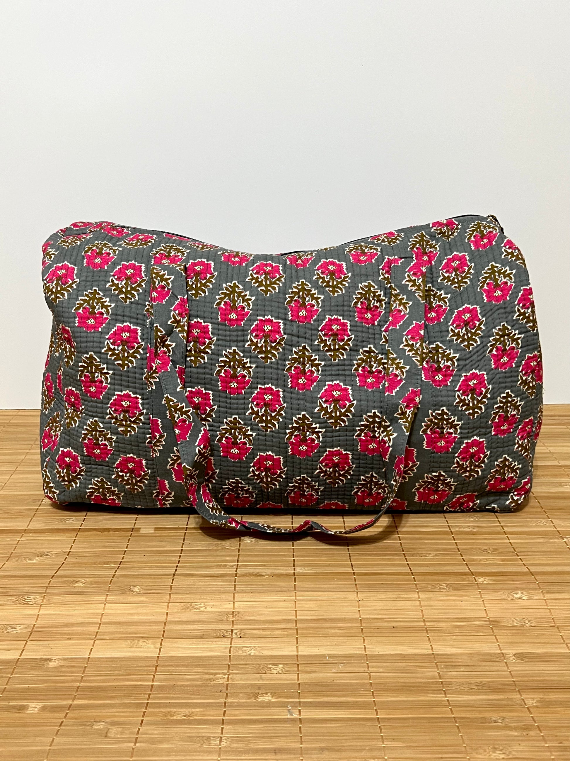 Bolso de viaje artesanal, hecho a mano en la India con 100% algodón natural. Disponible en varios modelos con estampados únicos y coloridos (ver fotos). Ideal como bolsa de fin de semana, bolso deportivo o bolso diario.