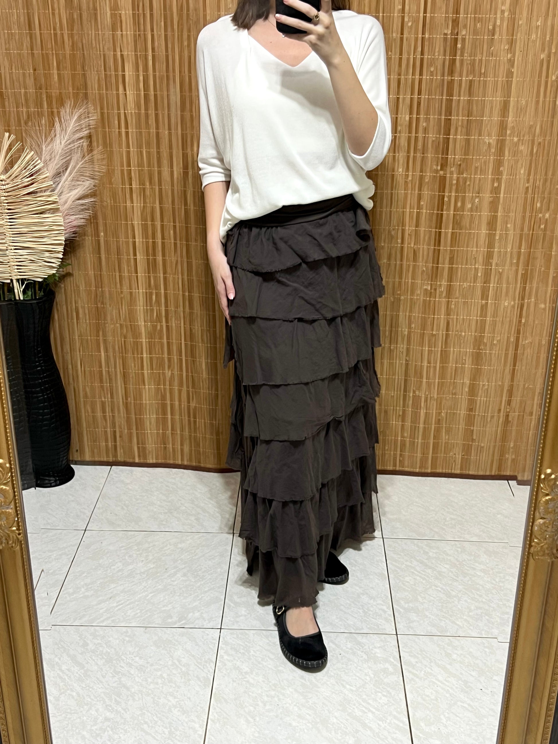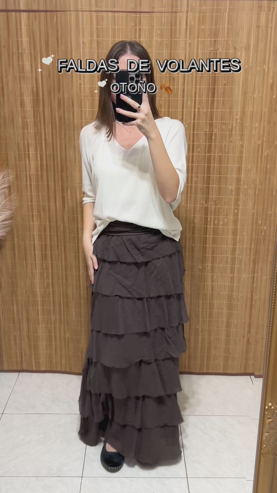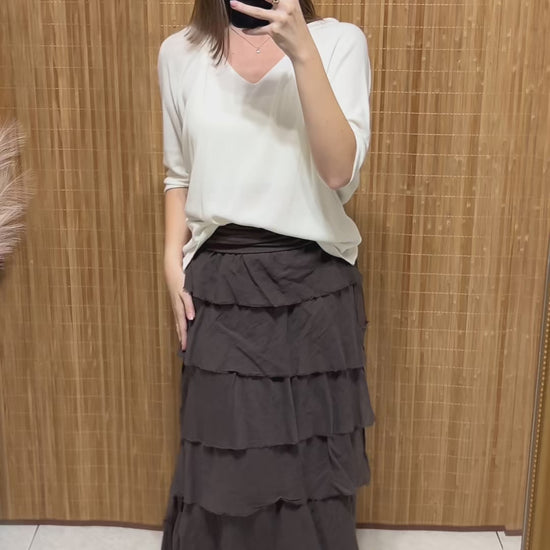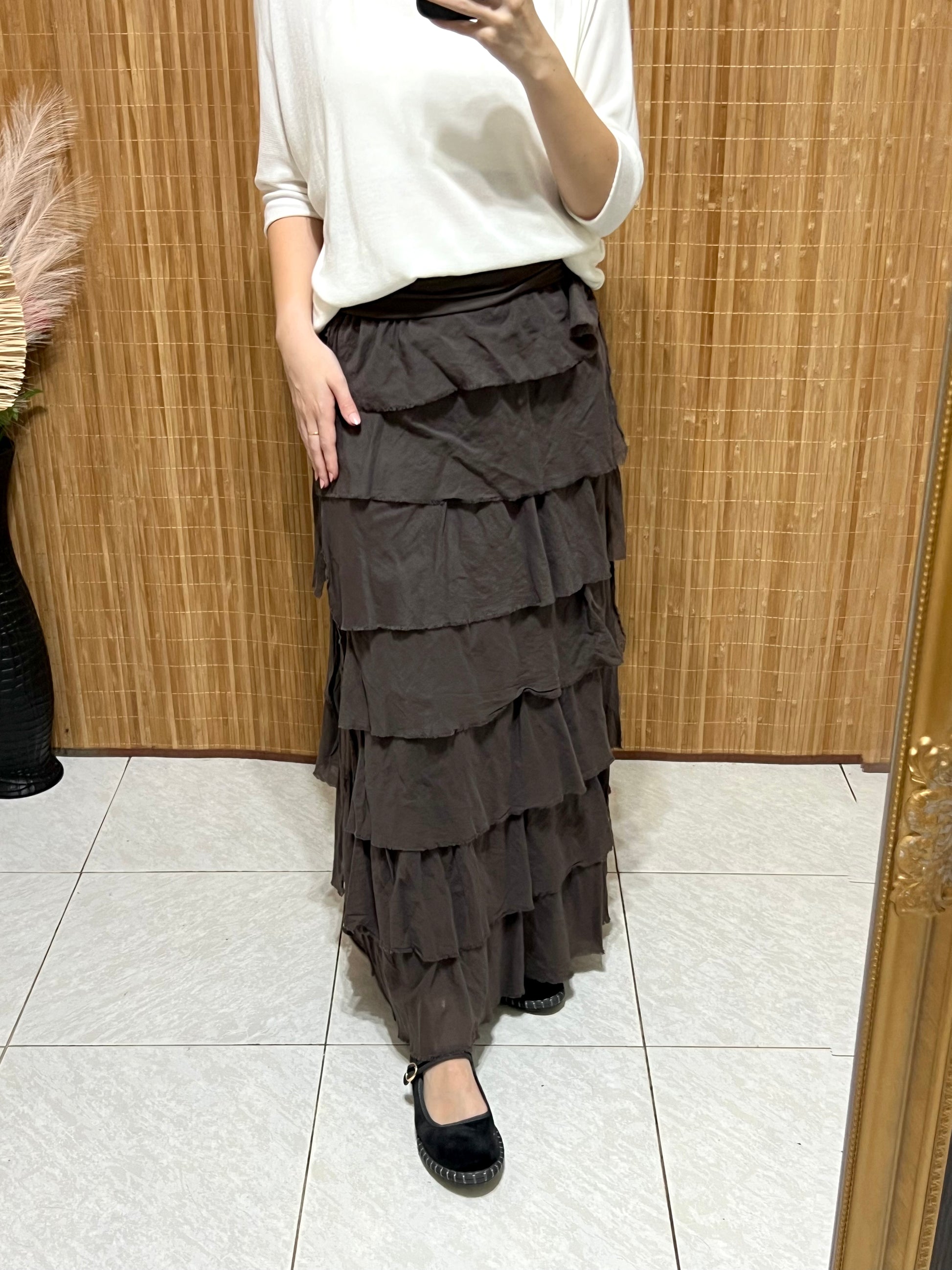 Falda de seda con volantes en capas larga, ligera y elegante, perfecta para tus looks otoñales. Disponible en varios colores. Tallas: XS-S, M-L.